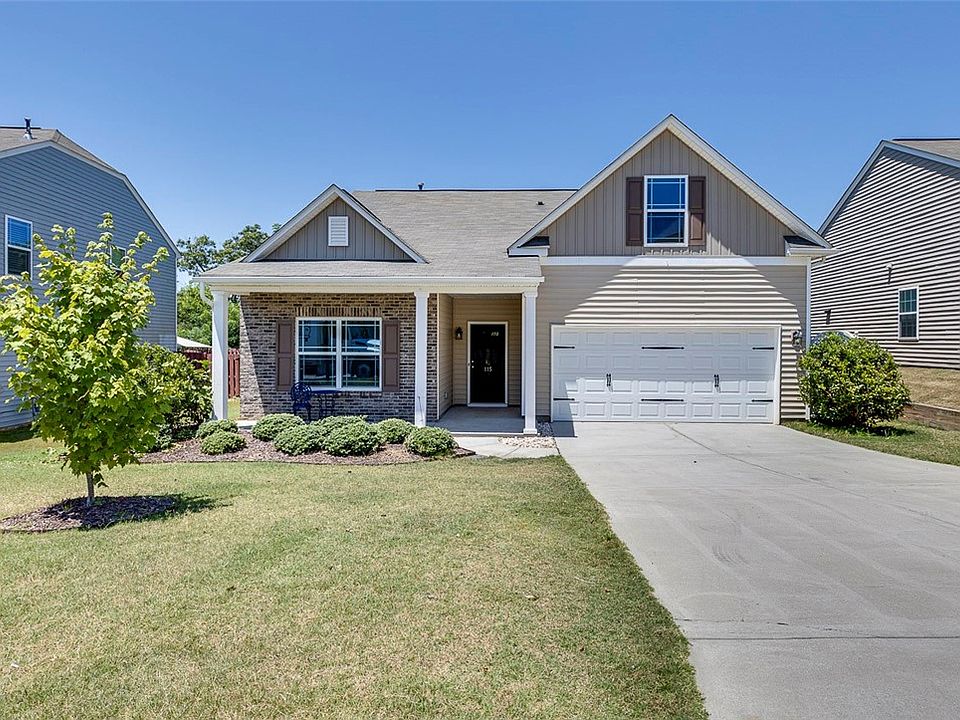 115 Caledonia has one of the most private back yards and one of the best views in the neighborhood. This 3 bed, 2 bath home, also offers a bonus room, with a closet. The home was built in 2016. The open living, kitchen and dining features vaulted ceilings, upgraded kitchen cabinets and a gas log fireplace. The private master bedroom suite features tray ceilings, tall double vanity, walk-in shower, garden tub and a private “water closet” and a huge walk-in closet. This floor plan also offers a large walk-in, laundry room. The homeowner has also installed storage shelves in the attic. The neighborhood offers a pool with common areas! Schedule your showing today!