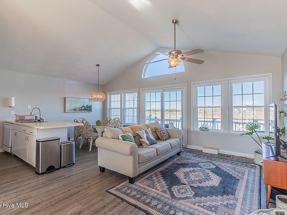 Welcome to this beautiful 2-bedroom, 2.5-bathroom beach townhouse that boasts a reverse floor plan, maximizing the stunning views of the sound. Situated in the beautiful town of North Topsail Beach, just steps away from community private beach access, this home offers it all.