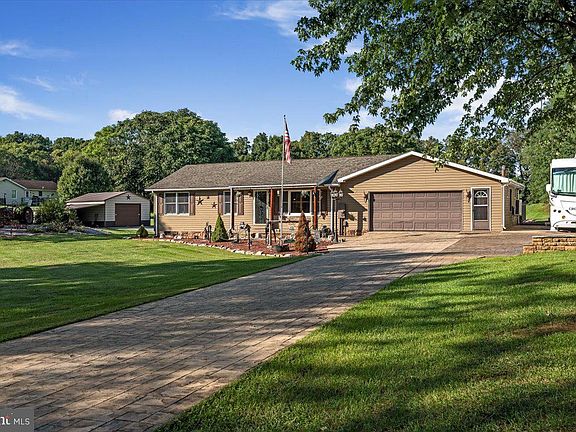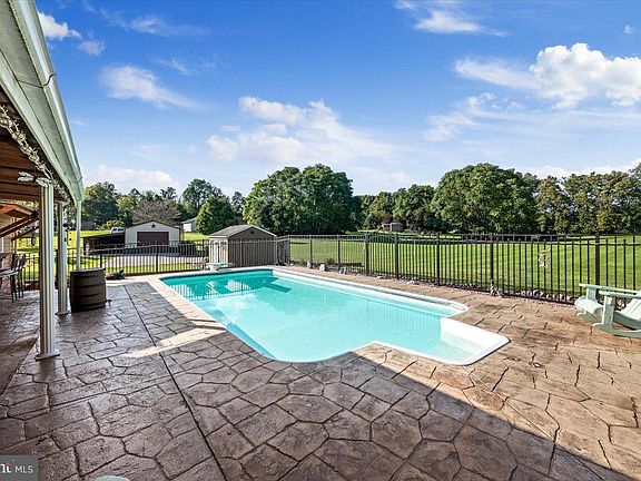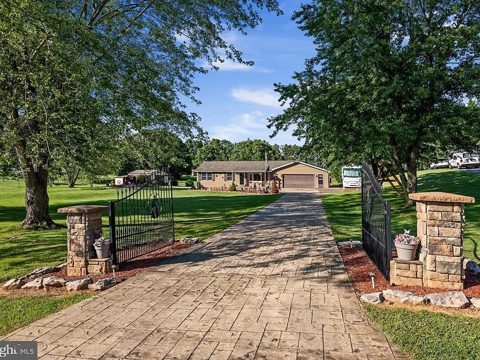 Country roads take you home to this lovely ranch-style estate. Where do we start; the front iron gates or the in-ground pool??? This one owner, 3 bedroom, 2 bath home on 1+ acres has had many updates and upgrades with no details left behind. Enter the property through the gated, lengthy stamped concrete driveway. Around back you’ll find a wrought-iron fenced in, in-ground pool with stamped a concrete patio surround and lounging area that has overhead coverage and ceiling fans for those super-hot summer days, plus lots of level yard space to play and entertain guests. Or enjoy working in the 18x26 metal building with a 13x26 overhang tinkering with your extra vehicles or toys. The large wood walk-in shed also conveys. Inside the home, gorgeous hardwood floors run throughout. The eat-in kitchen has quartz countertops, stainless steel appliances and travertine tile flooring. There are two living room areas to relax, one with a vent-free gas fireplace. 3 nicely sized bedrooms share a full hall bathroom with a standup showing and lovely soaking tub. The attached climate control two car garage holds the laundry area and a half bathroom and has a rear entry to the backyard where you’ll find the covered sitting area to relax poolside. The immaculate grounds offer extra parking next to the garage with a 50amp RV plug. *** New hot water heater in 2023, roof and siding replaced approx. 5 years ago. This house is move-in ready and won’t last long, schedule your showing now!