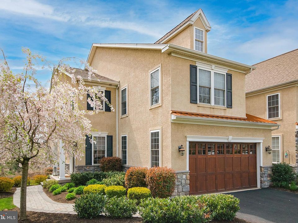 SELLERS ARE WILLING TO CONTRIBUTE $10,000.00 TOWARDS CLOSING COSTS AND/OR BUYING DOWN THE RATE. Beautiful Carriage home in sought after Cold Point Manor development. This end unit features a 2-car garage with a new custom paver sidewalk, private front entrance and a spacious floorplan that is perfect for entertaining. The first floor features hardwood floors throughout, two-story grand room with a custom designed coffered ceiling and a gas fireplace. The grand room has large windows allowing for natural lighting and an open floorplan that flows into the bright eat-in kitchen with new white quartz counter tops, extended island, custom 42" cabinets and stainless steel appliances. Sliding glass doors open to a beautiful deck overlooking the backyard. Finishing the first floor is a powder room, access to the attached garage, an office/study with enclosed pocket doors and a large dining room featuring a tray ceiling and chair rail. Up the beautiful stair to the second floor there is a full bath with two additional bedrooms and a walk-in laundry room. Down the long hallway, enter into a private primary suite with cathedral ceilings, two oversized his and hers separate custom designed closets for all your clothing needs and more! The main bath features a glass walk-in shower, dual vanities and a soaker tub. Finally, there is a finished walk-out basement with sliding glass doors to step out onto a back patio that is perfect for relaxing or entertaining. The basement also features an enclosed area with ample storage, dual zone heating, A/C, and a built-in water softening system. This home is must see and is convenient to shopping, restaurants and easy access to the PA Turnpike and 476. Please note the square footage of this home does not include the finished basement. Items to note: Gas fireplace, Colonial School District, 2 car garage, walk-out finished basement, office, walk-in laundry room, Master Suite, walk-in closets, end unit, storage, Quartz countertops, kitchen island, deck, back porch, custom paver walkway, water softener
