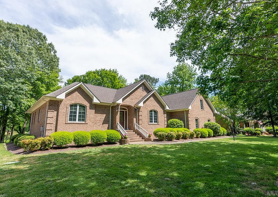 Total brick custom home offers upgraded features and a number of recent modification. This stunning home boasts a large great room, open kitchen, formal dining room for those special occasions. The first floor living is terrific for those not wanting stairs but does offer a large frog with an additional upper level bedroom with half bath. The sunroom is most enjoyable any time of the day as is the bright sunlight for early morning enjoyment while watching golfers from the breakfast nook. Home has been well maintained and is truly a gem.