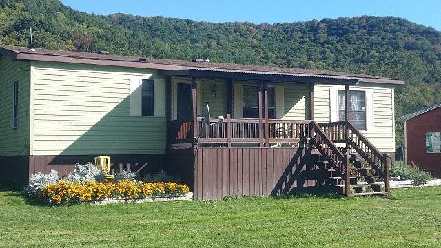 Country living with a beautiful view of the rolling hills off the back deck. Cute double wide (Redman, Model #41J31BDWA2018)with a front covered porch where you can watch the sun set. Lots of updating has taken place. Three horse stalls have been added to the 1 car garage, which can be changed back to a 2 car. Fenced in pasture & spacious back yard. High efficient water heater.
