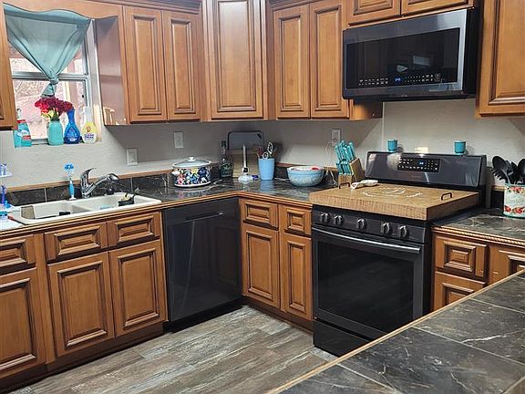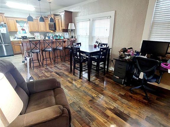 Cute 2BR-2BA within walking distance to city park and downtown. Nice kitchen with all appliances and lots of cabinets. Laminate flooring, back deck and detached garage, electric fireplace in living room, thermal pane windows. Buyer is responsible for checking square footage and acreage. Listing agency is not responsible for inaccuracies.