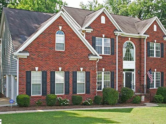 5 large bedrooms with 3 full baths, 1 bedroom and full bath on main . Brick Front in great neighborhood with community pool ,playground and clubhouse. Large dining room, living room or office, master is huge with large bathroom, with jetted tub, seperate shower and his and her vanities. Kitchen is large with island and breakfast room. Sunroom or playroom off great room. Fireplace with gas logs. Half acre private lot in Powdersville School District.