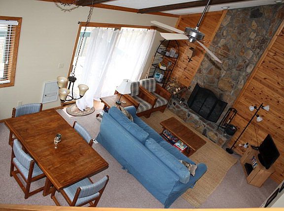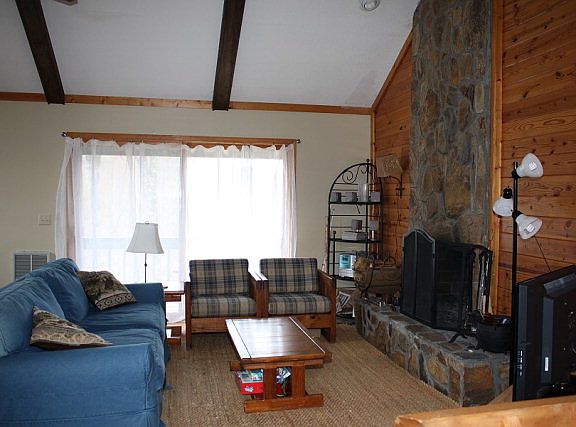 HUGE PRICE REDUCTION - BRING OFFERS!! All the right updates done to this cute 2 bed/ 2-1/2 bath home with a sleeping loft that makes for a nice 3rd bedroom. Level Entry. Gorgeous floor to ceiling stone fireplace (wood-burning). Lots of wood accents, and neutral earth tones throughout the home. Granite in the kitchen, with matching white appliances and large pantry. Open floor plan- kitchen, dining room and living room. Above kitchen is a large sleeping loft, accommodating two twin beds. Downstairs are two large bedrooms, master with en-suite, and additional full bath. Stackable washer/dryer, linen closet and storage. Tankless (gas) hot water heater. Home is sold turnkey and FULLY FURNISHED! From lower level, easy access to large, rather flat yard with lots of space. Treehouse, teepee, tire swing for hours of entertainment for the kids/grandkids. Plenty of parking spaces with easy level entry. Close to ski slopes, and restaurants. On paved road. Would make a great rental property.