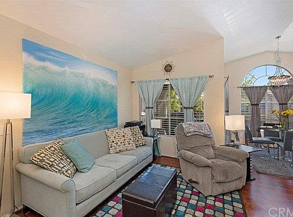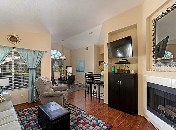 Welcome home to this two bedroom and two full bathroom highly upgraded home in the desirable Salerno Condominium Community. The kitchen boasts granite counter tops, stylish white cabinetry, recessed lighting and newer gleaming stainless steel appliances. This home has an open floor plan, is light and bright with vaulted ceilings, beautiful manufactured wood floors and designer paint. A cozy fireplace graces the living room. The oversized master bedroom has a walk-in closet. The Indoor laundry is conveniently located by the master bedroom. You can access the large patio for outdoor California living from the Dining room. One car attached garage. Salerno Condominium Community amenities include pool, spa, and BBQ area. Just steps to Foothill Ranch Community Park where you can enjoy tennis, basketball, volleyball, baseball and a tot lot. Award-winning Blue Ribbon Foothill Ranch Elementary School is close by, and this home is just minutes to shopping, restaurants, movie theaters, toll roads, the I-5 and 405 freeways. Don't miss out on this great home!