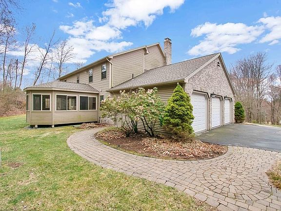 Sensational & Secluded...This Custom Blt, One Owner Colonial, 3 car attached garage awaits YOU! Additional carriage house offers a one car garage w/ great storage space and second flr finished home office w/ half bath. As you enter this GRAND Colonial, sunlight shines throughout this beautiful family rm, two story ceiling, brick hearth frplc w/ hdwd flrs opening to fantastic kitchen highlighting cabinets galore, large island w/ wet sink, ss app, dining area w/ french drs to quaint 3 season CEDAR planked sunrm, this is as serene & private as it gets! Just off the kitchen towards the garage features laundry and half bth. Formal dining rm w/ hdwd flrs opens w/ archways to the formal sunken in living rm w/ brick hearth frplc, vaulted ceilings & archways. FIRST FLR MASTER SUITE RETREAT is just perfect, hdwd flrs, walk in closet, full bth w/ jacuzzi tub and french door to balcony. Second flr offers two additional bdrms w/hdwd flrs, spacious guest full bth and a great loft area! METICULOUS!