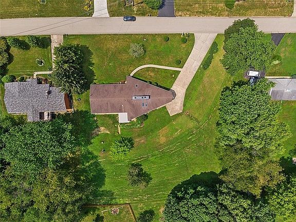 Absolutely one of a kind. Unique custom built ARROW shaped contemporary ranch home pointing due NORTH! Five generous sized bedrooms with large closets, three and one half baths. (two Jack & Jill) Soaring wood beam ceilings, many windows & skylights provide an abundance of natural light. Main floor laundry, sunken living room with floor to ceiling brick fireplace, an enormous unfinished basement with unlimited possibilities. Covered rear patio. This move in ready home was lovingly maintained by one single owner. A tiered 1.00+ acre lot offers wonderful views. Minutes from the new High school, shopping, library, tennis courts and Montour trail.