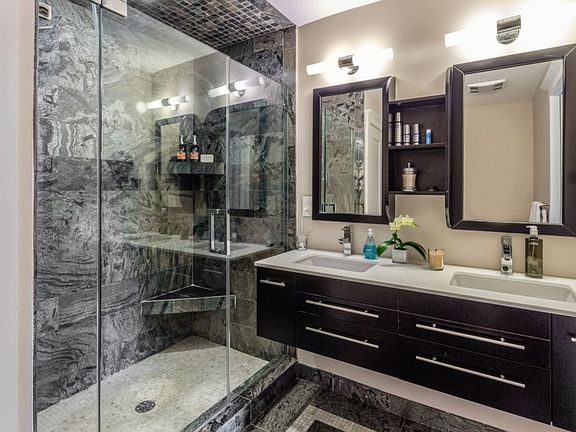 PRICE REDUCTION!! 1 YEAR PAID RENTAL PARKING DOWN THE STREET. See Virtual Tour Simply stunning! Don't miss this unique one-of-a-kind 3 bedroom/ 2 bathroom Downtown Hoboken condo that has it all. From the moment you step off the elevator directly into your apartment, you are surrounded by luxury. This home has been designed with modern finishes and smart technology for lighting, sound systems, heating/cooling, window treatments and more. The kitchen is top of the line equipped with Viking appliances, bamboo cabinetry, granite counter tops and breakfast bar. The living/dining room features high ceilings, custom moldings, recessed LED lighting and floor-to-ceiling sliders leading to a terrace perfect for summer BBQ's and morning coffee. Master suite is relaxing and bright with floor to ceiling windows, Juliet balcony, large custom California closets and en-suite master bath finished in granite, with a dual vanity and frameless glass shower. Two additional bedrooms, both generous in size, offer high ceilings, large windows, detailed ceiling moldings and an abundance of closet storage with customized upgraded California Closet systems. Large guest bath is finished with contemporary fixtures, glass counter tops and a soaking tub. Includes hardwood floors throughout, Central A/C, in unit washer/dryer and soundproofing throughout. Located in a prime Downtown Hoboken location. Additional features page attached.