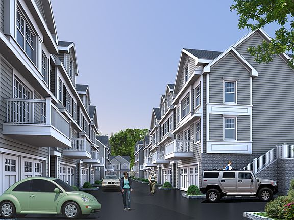 Enjoy low-maintenance living in a brand NEW 3 BR/3.5 bath townhouse end unit with 2 car garage, high quality standard finishes, and on-site amenities, minutes from downtown Stamford, and within walking distance of the Glenbrook train station. The open-concept main living area is one flight up from a two car garage and tiled entry hallway. This main living area consists of a sleek kitchen with breakfast bar opening to dining and living room, along with a half-bath and closet. The kitchen features clean-line shaker style white cabinetry, carrara quartz countertops, stainless steel appliances, and polished gray backsplash tile. Generous crown and baseboard moldings against stained hardwood floors and light gray walls create the perfect backdrop for your personal furnishings and artwork. Oversized windows and sliding glass door to a balcony off dining area create an open and airy feel. Upstairs are two bedrooms, each with en-suite bath, and a conveniently located laundry area. A third bedroom with en-suite bath and walk-in closet is located on the third floor. Bedrooms come standard with Shaw carpeting and an upgrade to hardwood is available. Other outstanding features of this home include energy-efficient 3 zone heating & cooling, Harvey windows with double glazed, Low-E insulated glass, and a tankless gas water heater for hot water on demand. Offered at pre-construction pricing, this townhouse will be ready for occupancy in April 2019.