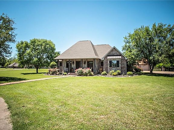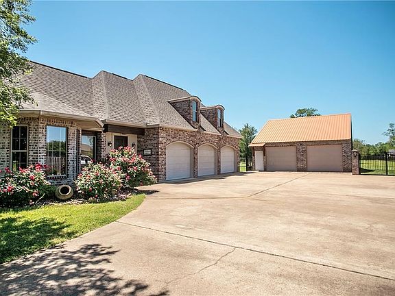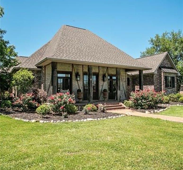 Exquisite brick Acadian style home featuring a horseshoe driveway, welcoming front porch, and an oversized 3-bay attached garage including AC in one bay, making it ideal for a workshop. The 30 x 40 one and a half story shop, wired with 220 for welding, boasts a metal roof and 2 roll-up doors. Inside, discover antique beams, hardwood floors sourced from a cotton gin, and a cozy gas fireplace. The kitchen is a chef's dream with a large island, Italian slate flooring, commercial-grade appliances, and a walk-in pantry. The living room showcases built-in entertainment, while a wet bar leads out to the inground pool. Upstairs, find high ceilings, Cypress walls, and a full bathroom in the spacious bedroom. Additional features include a walk-in attic, three separate AC units, and an outdoor kitchen grill. The fenced backyard ensures privacy, while the pool, maintained by a professional pool company, offers worry-free enjoyment. Also, enjoy the convenience of an irrigated timer in all the flower beds! This home has too many features to list, it is a perfect blend of elegance and functionality!