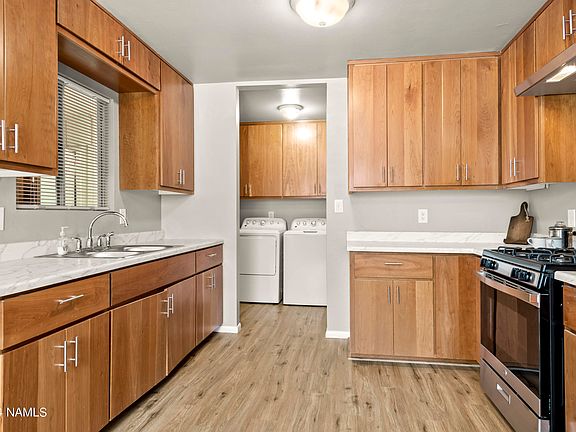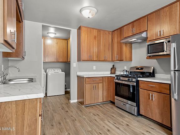 Looking for a totally remodeled home with a cabin like feel in the trees? This is it! This single level 3 bedroom home offers lots of upgrades. Just painted in and out. Brand new flooring throughout along with a new furnace and water heater. All new appliances as well! Relax on the covered patio during those perfect Flagstaff summer days and cozy up to the wood burning fireplace in the evenings. Close to the National Forest and trails. Also has a spacious shop with an additional storage area along with a shed and a potential pond feature in the backyard! No HOA. A great opportunity in a quiet section of Mountainaire. Competitively priced and move in ready.