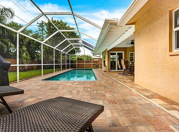 This home has all the characteristics of a new home with the charm of an old home. This 3 bedroom 2 bath pool home has been newly renovated on the inside and out. There is crown molding throughout, recessed lighting throughout, top grade PGT hurricane impact glass on all windows, doors, and sliders, all interior doors have been replaced, all exterior doors have been replaced with hurricane proof doors including a steel reinforced garage door, brand new air handler, compressor, & duct work, new water heater, completely renovated laundry room, master bath, & guest bath, tile throughout, granite & quartz counter tops throughout, & so much more. On the exterior of the home, the entire lawn & landscaping has been redone, newer 6 foot privacy fence, the swimming pool (lap pool) was completely redone along with the entire outside pool deck & covered lanai area with pavers, & a new pool filter. A new roof was installed in 2009. This home sits on a well manicured lot with a backyard that offers complete privacy. The HOA is voluntary. Location, Location, Location! This home is about 3 miles to Naples beaches, 2 miles to the Mercato Shops and is in an A rated school district.