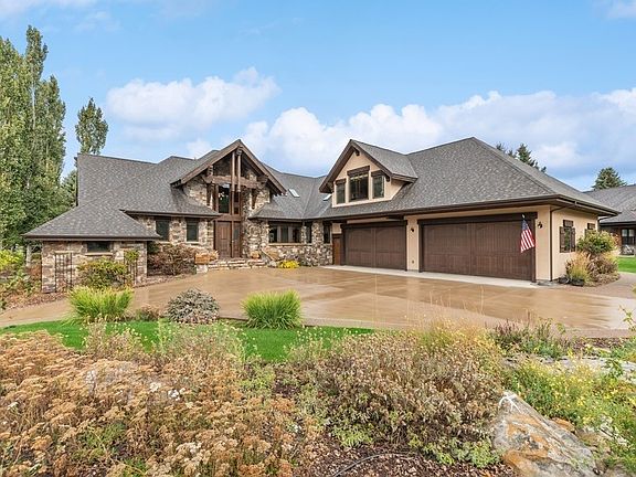 Discover luxury living at its finest in this stunning 5,176 sq ft custom home nestled on over half an acre along the 12th hole of Eagle Bend golf course. Boasting unparalleled craftsmanship and attention to detail, this beautiful residence offers a perfect blend of elegance and comfort. Step inside to find an expansive open-concept living space with floor-to-ceiling windows & gas fireplace. The gourmet kitchen is a chef's dream, featuring top-of-the-line appliances, a center island, and granite countertops. The spacious primary suite includes a gas fireplace, two walk-in closets and an adjacent private office, and there are 2 additional bedroom suites. A versatile loft area, a second office and a workout room provide additional spaces for your daily activities. Entertain in style with the many outdoor patio areas and meticulously landscaped gardens. Sold furnished with a few personal items excluded. Call Bill Leininger at 406-253-7333 or your real estate professional.