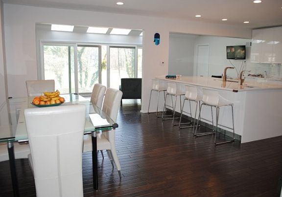 Beautiful contemporary custom home overlooking beautiful views of the Woodcrest Country Club Golf Course. A one of a kind find in Cherry Hills East most desirable neighborhoods. Beautiful contemporary with lots of light will have you in love. This home offers 5 great sized bedrooms with 2 extra rooms for home office and guest room. Two bedrooms / 2.5 baths and the master suite are located on the main floor, two bedrooms and 1 full bath are located on the second floor. The above ground basement with lots of light offers a large open space with a guest room and home office. Beautiful clean contemporary design throughout. Shaw solid maple hard scrapped wood floors throughout main and second floor. The oversized sleek kitchen offers a jumbo island with two sinks, great seating space, a Frigidare Professional Series stainless steel appliance package that offers an oversized built in refrigerator/freezer, built in double wall oven, built in microwave, dishwasher, and a huge 48 inch Viking cooktop. Lots of cabinet space and a walk in pantry. Oversized 16 feet Pella sliders that lead to a deck complete this beautiful kitchen. All new Pella windows throughout. The master suite offers a large walk in shower and a free standing tub for those relaxing times in need. Custom closet by design closets with lots of space throughout. The oversized laundry room is located on the main floor and offers lots of cabinet space. Heater is three zones and AC is two zones.