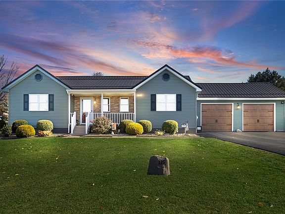 Turnkey ranch home on a 1.58 acre picturesque lot. Split floor plan design, This 3 bedroom, 2 bath home is move in ready! just a few of the recent improvements, NEW Carrier furnace and whole house air conditioner, NEW hot water tank, New LG stainless dishwasher, microwave, gas range and refrigerator. 42 x 28 unfinished basement with comfort built pellet stove with remote and bilco doors to the outside. NEW Metal roof, siding, downspouts, gutters, railing and Trex decking. 2 New porches, clopay garage doors and openers, paid solar system with outback battery backup system, whole house water filter, 12x24 lawn building, greenhouse, video security system, comfort built pellet stove with remote, New well tank. easy access to Rt 8 and I 79. Just a short drive to Slippery Rock University.