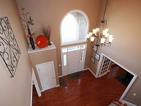 Classic - Stately Brick front 2 story with dentil molding in Mt. Zion. Nicely situated on a spacious corner lot with a side load 3+car garage. 3 season room with tile floor that leads to stamped patio. Generous room sizes. Dramatic 2 story foyer. Hardwood floors and 9' ceiling throughout the main level. Gourmet kitchen with granite tops and tile backsplash, prep island + snack bar. Kitchen opens to breakfast room and onto Great room with fireplace. Formal dining room with crown molding and a lit - treyed ceiling. Fabulous office with a wall of built-ins. 4 Bedrooms up with common bath including dual sinks and a separate shower room. The master suite includes a jetted tub plus a walk in shower with a Delta body spray system. 75 gal water heater with recirculater. Finish ready basement with 9' pour. Located in Mt. Zion's popular Carrington Estates near schools, parks and trail system. BE SURE TO INQUIRE ABOUT INCENTIVES.