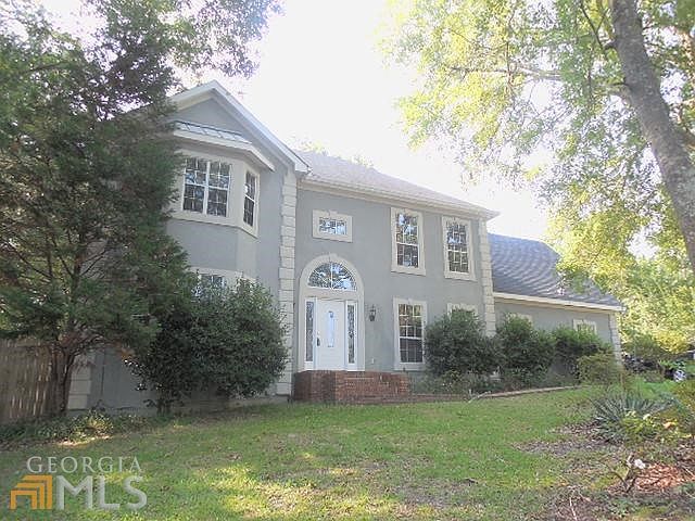 Look at that house! This 2 story home sits on almost an acre lot and has an in ground pool area with Tiki hut bar. Property located on a private cul-de-sac with no drive through traffic & within 1 mile from Robins AFB. Close to shopping centers & restaurants. Home has a screened in porch area, privacy fence & 2 car garage with separate backdoor. Open kitchen area has pantry & all appliances are included. Family room has recessed lighting & fireplace with French doors opening up to screened in patio. 2 staircases leading upstairs to all bedrooms & laundry room.