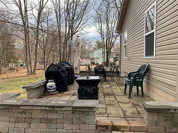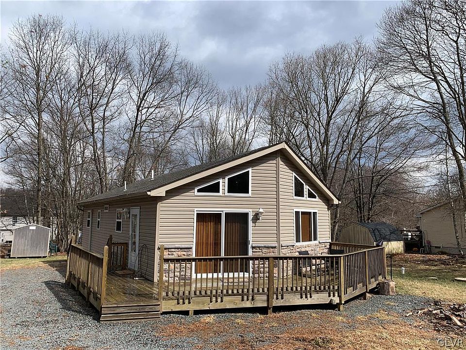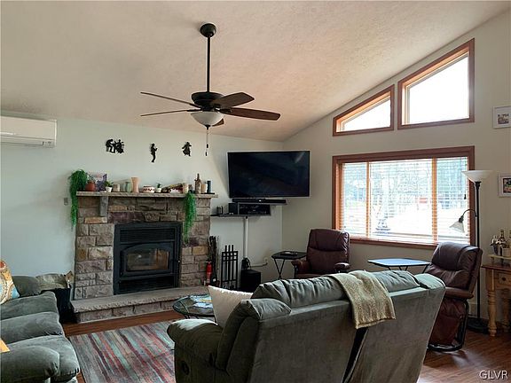 3 bedroom, 2 bathroom ranch, close to the lake and clubhouse in a gated community with 5 lakes, 2 pools, tennis ct, 24 hour security, garbage/recycling service and road maintenance. House features open floor plan with cathedral ceilings. Living room with stone faced fireplace, kitchen with plenty of cabinets flowing into the dining room area. Primary bedroom offers its own bathroom. Split units in every room for AC. Flat yard with shed and patio on the back. Close to many Pocono attractions.