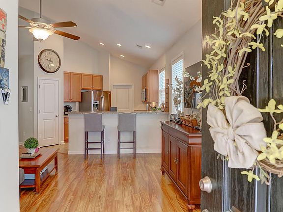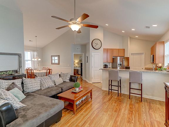 Beautiful move in ready 3 bedroom 2 bath one story home in White Gable.Walk into a open floor plan with cathedral ceiling laminate floors & neutral colors. The laminate floors are in the family rm dining rm & master bedroom. The kitchen has stainless appliances & gas cook top. Relax in the spacious master suite with tray ceiling.Two additional bedrooms can be used for children guests or a study. Enjoy the outside on a nice screen porch. A 2 car finished detached garage & additional parking pad offers plenty of parking for cars or your personal gym. A pond behind this lot give you added privacy. White Gable has a community pool clubhouse tennis court & playground.