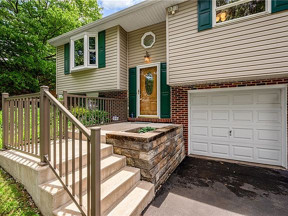 Charming well maintained Split Entry with 2 car integral garage. Wonderful location and curb appeal! Beautiful perennial gardens in front and rear of property. Amazing updated kitchen with "illumination panels" which add wonderful lighting to the space. Cabinets and storage are tremendous in this marvelous kitchen! Wall out deck adds plenty of additional room to make entertaining a breeze! Freshly cleaned carpets, wonderful office on main floor for professionals working from home. Large family room on lower level with fireplace. Fantastic property in prime location with easy access to major roadways. Major appliances included.