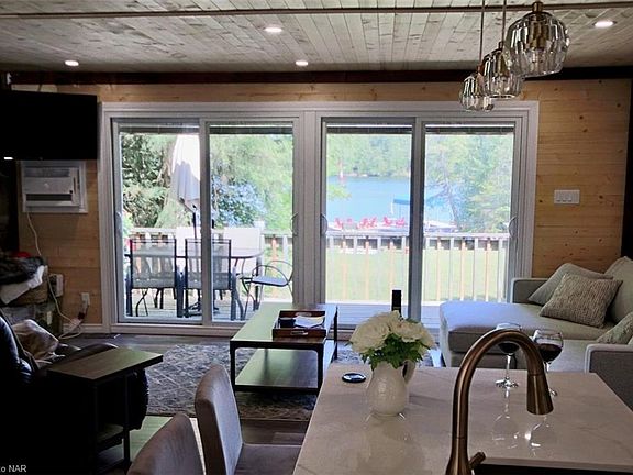 CHANDOS LAKE: Four season stunning renovated and perfectly appointed in a quiet bay waterfront 3 Bedrm bungalow. Enjoy panorama views of the lake in your private hot tub, on your dock or from inside the cottage at the breakfast bar or beside the wood burning fireplace. Views of the lake from every bedroom that have all been renovated. Custom bathrooms, Dekton countertops with waterfall island, brand new stainless steel appliances, Generac generator (new) that powers the entire cottage, new drilled well(220ft deep), brand new furnace, laundry, dock (over 1000sq ft) with a covered dock slip, massive yard with tons of room for sports and two driveways with plenty of parking and outdoor storage. Full heated basement with 1100sq feet of storage or potential to add more living space. Beautiful sandy beach with gradual entry into the water and space to launch your boat, oversized flagstone fire pit for amazing campfires by the water. Hiking trails nearby. Town of Aspley 10 min away. Turnkey investment property rented for over $80,000.00 annually with plenty of upside potential as owners occupy many weeks throughout the year. Add it to your portfolio or keep it all to yourself! Follow Covid-19 Protocol in place; wear mask, do not touch personal items. Use Sanitizer and use wipes if touched anything. Only 2 audits with the Agent in the house at the same time. No children at the house during showings. Entrance to the basement is from the side driveway. Please turn off the lights and make sure the door is closed. There are cleaning lady, lawn care and snow removal already in place(contact info will be provided prior to closing)