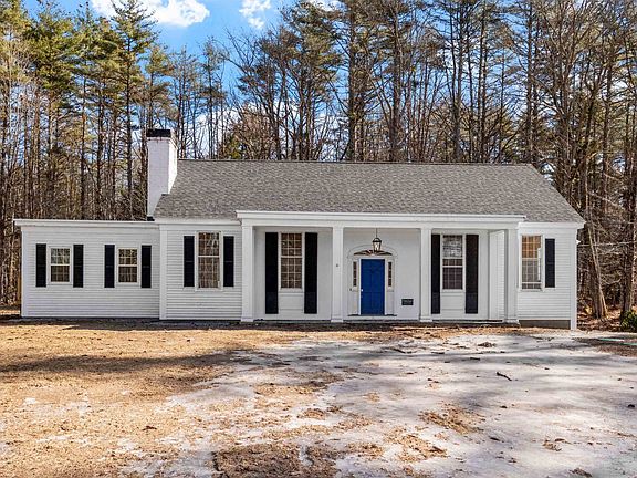 Known in town as the "White House" and with Presidential history to go along with it, this charming property just underwent a massive update and is ready for its new owners. Ronald Regan made a campaign stop to this house back in 1980 and supposedly gave a rousing speech to his supporters. All the major items have been updated to include brand new 4 bedroom septic, new paved driveway, new 200 amp electrical service, new roofs, new windows, sliders, decks, central cooling was added throughout and the list goes on. The home provides a very flexible floor plan and all living is on one level. The basement and 2 car garage are under. As you come up from garage, the large sun filled living room, kitchen, and dining room are on your left and you continue to two extra rooms, one with a new private deck which could act as an in-law area. The other wing of the home contains the huge master bedroom, with private master bath, along with the 3 other bright bedrooms and the full bath. The property is surrounded by woods and you have a seasonal stream right out back. Its a great commuter location right off of 89 and a couple of minutes to the village of Contoocook. Seller is a licensed agent.