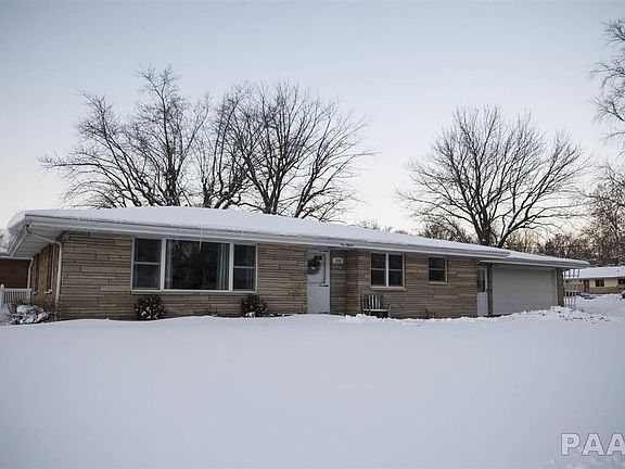 This 3 BR/3 bath East Peoria ranch truly WOWS! The beautiful stone exterior and new roof ('18) set the stage as you enter this spacious home featuring new carpet, tile flooring & kitchen counters. The generous sized breezeway currently used as dining rm offers wonderful built-in's & ample daylight. The updated kitchen with tastefully painted cabinets and tile flooring has eat-in dining area, large pantry and appliances which stay. Gorgeous hardwood flrs in all BR's, double cedar-lined closets in MBR, main bath with dbl sink/granite counter and stunning tile. Fabulous storage and extra living space in basement w/wet bar, full bath & extra rec or hobby room. Call for showing TODAY!
