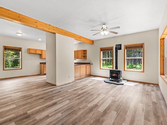 This charming 4 bedroom, 2 bathroom home, nestled on almost 6 acres of level forest, is a great place to escape. Enjoy the tranquility of the secluded location while still being just minutes away from amenities. The property features a cozy fireplace, perfect for chilly evenings, and a large shop for all your hobbies and storage needs. Newly installed luxury vinyl flooring adds a modern touch, and hydronic floors on the main level create a warm, welcoming environment. The large covered deck is a great place to relax and watch the wildlife amongst the sounds of nature. Whether you’re looking for a peaceful homestead refuge with no CCR’s, or a place to entertain your friends and family, this home offers a wonderful blend of serenity and convenience.
