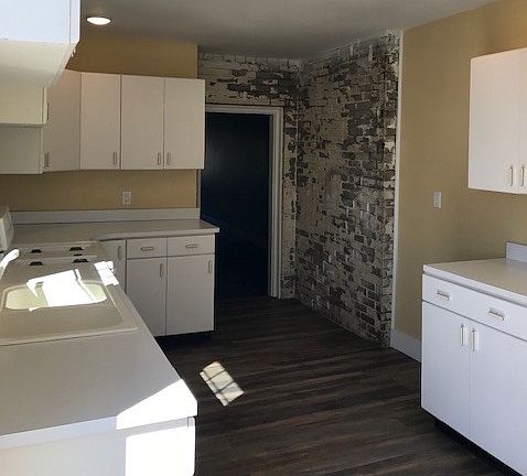 Commercial property that can also be used for residential. Main entrance on East 9th Street in the heart of Michigan City. Opens to a large front room with a closet that can be used for studio living, workspace, or commercial storefront. Large bathroom with shower, a utility closet, and an additional storage closet are on the way to the kitchen, which has lots of natural light and exposed brick.