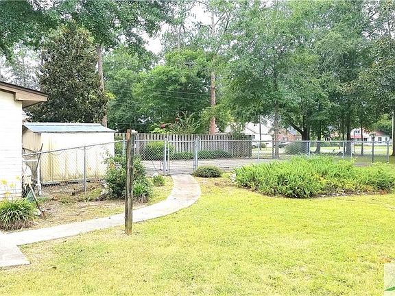 Large corner lot with sprawling brick home and in ground pool. Four city lots combine to make up this parcel = .76 acre. Unique features include- Huge master bedroom, built-ins, and separate laundry room, and extra storage. Hardwood flooring under current flooring. Home has new roof. In ground pool has new pool liner and cover, pool area has chain link fence for safety and storage building. Lots of potential, bring your ideas and your furniture! Home sold as-is.