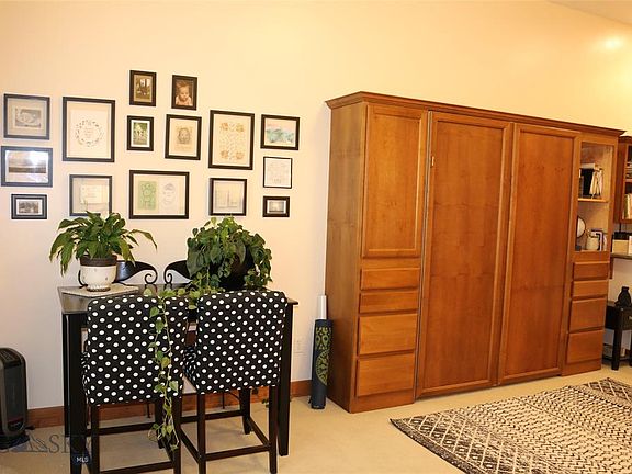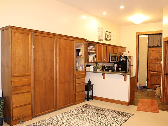 Ultimate Live;Work Studio in the heart of Manhattan. Finished as a residential condo this main level unit may also be utilized as commercial office space. [Zoned CBD-Central Business District] Great investment opportunity or cozy & modern accommodations with easy access to I-90, Gallatin River, & in-town amenities. Custom finishes in the open living area include floor to ceiling windows, radiant floor heat, built-in alder cabinetry, Murphy bed, granite tile counters, stainless steel appliances, tile bath & shower, high volume ceilings, & efficient washer/dryer undercounter unit. With close parking, covered open air entry, beautiful courtyards, outside storage locker, & patio this condo offers ease of living with contemporary ambience. Don't miss this unique place to call home or launch your new venture or both!