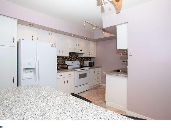 This is one to see!!! Bottom Floor! Beautiful Eat-in kitchen with new marble floor. Updated Kitchen, Tile back splash adds to the charm. Recessed lighting plus track lighting and ceiling fan. Beautiful Dining room floor all natural wood. All windows have newer glass. French doors from foyer leading into a very spacious living room. Newer Sliding glass doors lead to a patio surrounded by beautiful flower gardens. Laminate flooring in foyer & hallway. Bathroom has a newer vanity with granite top & newer toilet, doors have been replaced with louvered doors for a very nice look. Washer & Dryer are several years old. Bedrooms tastefully painted. Both bedrooms wired for cable. Huge inside storage room also. Conveniently park & walk right in through back slider doors, keys for slider! Association fee covers Heat, Water, Sewer, Exterior Bldg Maint., snow, trash, lawns, & beautiful pool. No extra fees here. Great location, jump on Rt. 38, 73, close to 295 and NJ turnpike. Within 15 minutes from Philadelphia!