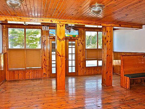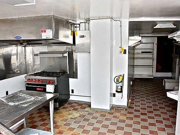 Own a piece of New Palestine history! Everyone remembers this as the old "Bonnies" restaurant. It has recently been used a Bakery and could very easily be put back to a working kitchen in no time. Also, there are 2 apartments with separate entrances and utilities. The downstairs apartment is a 1 bedroom, 1 bath and the upstairs is a 2 bedroom, 1 bath. Lots of income potential!!