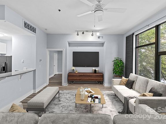 Be a part of the hottest neighborhood in Charlotte where very little inventory is often for sale especially in this price range! This updated 1 bedroom condo in the heart of everything to do has everything you need AND makes a tremendous investment. Why rent when you can own and barely change your address from all the excitement of the South End neighborhood. Bars, restaurants, retail shops, office, Panthers games, Light Rail connectivity is all a super short walk or stroll away in this ever changing and growing neighborhood. High ceilings, oversized windows with great light, open floor plan, updated light fixtures, brand new LVP flooring, refinished cabinets, new cabinet hardware plus the fridge, washer and dryer all remain. Come discover urban living at its finest in this one-bedroom condo nestled in the heart Charlotte's most exciting neighborhoods; South End.