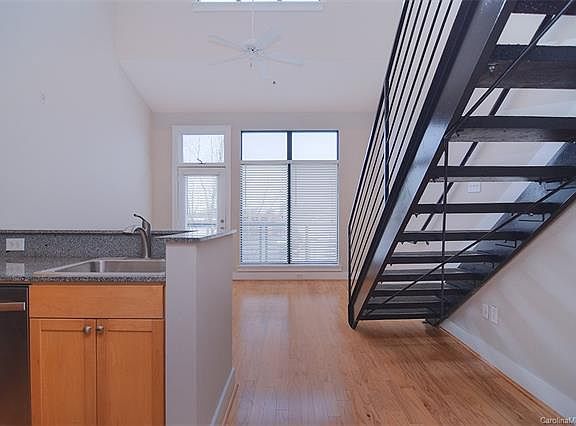 MULTIPLE OFFERS received - H&B due 2/23 by 5pm. Right in the heart of SouthEnd! Surrounded by restaurants, nightlife, shopping & practically next door to the light rail's Bland Station. Open floor plan w/ hardwood floors and gleaming w/ natural light by the oversized windows. Quaint kitchen w/ tons of counter space & cabinetry w/ eat-in bar open to the living area that overlooks some of Charlotte's most beautiful views. Take advantage of the space under the airy stairs & make it a home office. Laundry closet located on first floor for convenience. Drift up the stairs to the loft where you can create an intimate bedroom setting potentially adding a wardrobe & even a reading nook. Unit has been freshly painted throughout providing a blank canvas for your personal touch. Stand on the balcony & take in the captivating scenery or hang out on the rooftop terrace offering more views of the Queen City! Visit SouthEndCLT.org and check out the local happenings & attractions, like the Rail Trail!