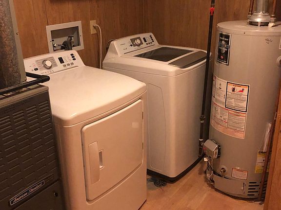 Fresh paint andnewer carpet welcomes you in the two bedroom brick ranch duplex. Stove, refrigerator, and matching newer washer and dryer in the laundry room are furnished. Tenant pays all utilities. No smoking and no pets. Owner provides lawn care.