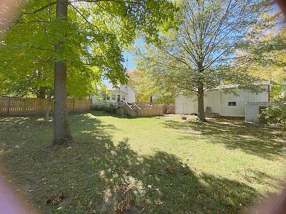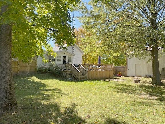 A GREAT PROPERTY WITH SMALL TOWN LIVING AND A WELCOMING FRONT PORCH! This home has been blessed with lots of cosmetic improvements (labor of love) and updates as well! Spacious rooms, the kitchen provides the appliances, plenty of cabinets (beautiful color), and countertop space. The layout of the rooms makes it perfect for the holiday gatherings with your friends and family! There is also a corridor that would allow for the bathroom to be made larger if desired or area for a desk. No more taking your laundry away from home as there is a nicely sized laundry room complete with washer and dryer. Enclosed back porch and the partial unfinished basement add additional storage. Not many homes in this price range offer a 28 X 40 detached metal building with electricity, concrete floor, camper hookup (also a half bath not used or warranted) and water to the building. Great for multiple vehicles, campers, jet skis, lawn mowers or the perfect space to enjoy your hobbies! AC (2022). The privacy fenced yard is a bonus whether you are relaxing on the large raised deck or watching the children and/or pets play. Some hardwood flooring and wide trim help give this home OLDE WORLD CHARM! ***Not all rooms are photographed yet as they didn't have the furniture back in place since working on the living room and 2nd bedroom floors. Will be updated when completed.