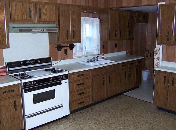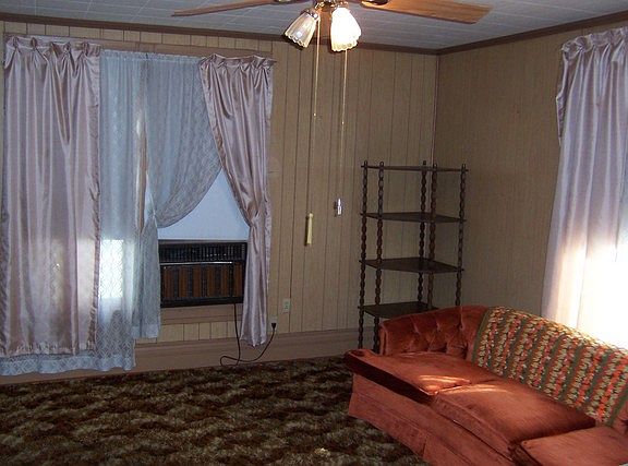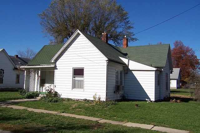 4 room, 2 bedroom home with open front porch and enclosed back porch. Offers living room, kitchen and bath. Wall furnace and space heater. Window air. Ceiling fans. Hardwood floors under carpet in living room and bedrooms. Detached 2-car garage.