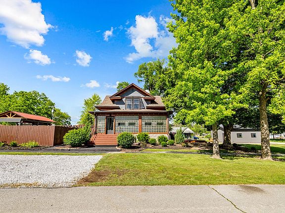 Welcome to a property where historic charm meets modern updates and resort-style living--nestled on a double corner lot. Built in the 1930s, this home radiates character from the moment you step inside, with original hardwood floors, rich wood trim, and a stone wood burning fireplace that preserves its timeless appeal. The glass tile entryway is a true conversation starter, setting the tone for the uniqueness throughout the home. The main floor offers multiple living spaces including a formal living room, a dining room that feels like it was plucked from a vintage movie set with original chandalier, and a beautifully updated kitchen featuring butcher block countertops, new appliances, floor-to-ceiling cabinetry, and direct access to both side yards--making entertaining a breeze.Upstairs you'll find generously sized bedrooms, an updated full bathroom, and a bonus room perfect for an office, playroom, or creative space. The unfinished basement provides endless storage, houses the HVAC, boiler for secondary heat, and rough-ins for an additional bathroom or laundry area.Now for the fun part--step outside and soak in the entertainer's dream setup. Summers were made for this backyard: a 16x28 above-ground Doughboy pool with swim-up bar, dual pergolas, a covered deck, and even a hot tub. Thoughtfully designed landscaping features rainbow rock, mulch, and flower beds, with a full greenhouse for the gardener at heart. On the East side of the home, a second 18x30 deck just off the kitchen creates yet another space to relax or host.A detached one-car garage includes electricity, concrete flooring, and automatic opener.The massive 20x30 insulated shop offers a space for a camper with 30 amp plug on the exterior, 9' doors, timed outdoor lighting, built-in storage, and two entry points. With several updates ranging from new windows, to a new roof to all new paint, this stunning home should check all of your boxes!
