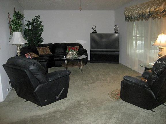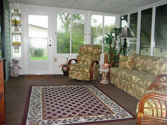 An absolutely beautiful home! New air conditioning unit, new washer, new carpet, new lanai enclosure with new lanai furniture, updated cabinetry, new dishwasher, new exhaust fan over stove with a larger walk in pantry. In short, this home is VERY well maintained and a delight to inhabit. This very nice home is located in the Ridgewood community! This community is gorgeous! Ponds abound and there is tropical vegetation palms and big oak trees throughout and you can be assured you will never be bored and there are no strangers at Ridgewood! It is a friendly community gated with manned gate guards 24 hours a day and 7 days a week! You will soon make precious friendships that will last a lifetime! Whether it is participating in the many planned activities, trips or dinners, swimming in the heated pool or playing shuffleboard or tennis you will be as busy as you care to be! Convenient? You bet and to just about everything. 3 banks, a dollar store, hardware store, post office and large library right outside the gates. Kmart is a block away and all manner of restaurants as well as a very popular outlet mall and supermarket are within blocks. AND WHY PAY EXPENSIVE LOT RENT WHEN YOU CAN LIVE HERE WITH FEES THAT AVERAGE LESS THAN $163 A MONTH AND THAT INCLUDES GRASS CUTTING, GARBAGE COLLECTION, AND ACCESS TO ALL AMENITIES. The big question is: What are you waiting for?! Come and enjoy the gentle Florida climate and delightful lifestyle that you have always dreamed about at RIDGEWOOD!