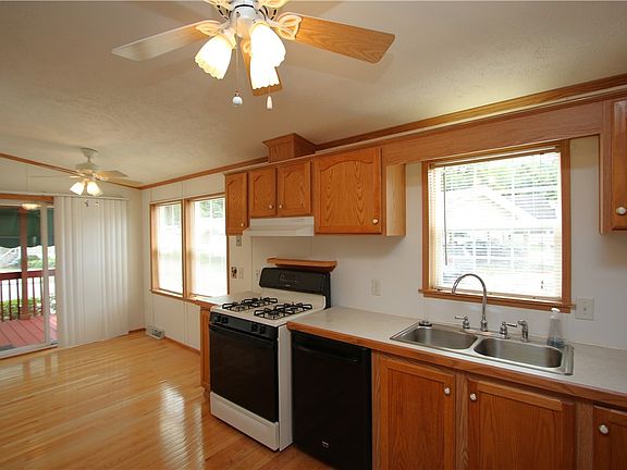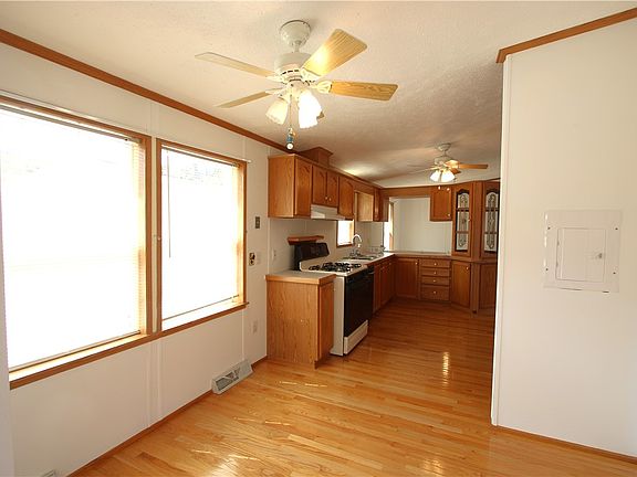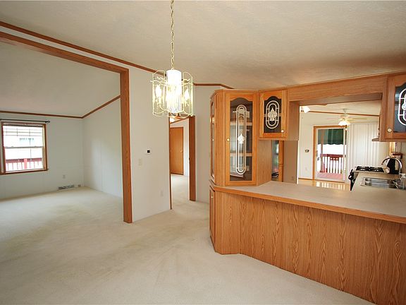 SPACIOUS One Level Living in Desirable Community offering an AWESOME 45x8 & 25x8 Wraparound Porch w/ Retractable Awnings in Front! Convenient Carport w/ Attic for 2 Vehicles. Sliding Glass Door leads into HUGE 22x10 Eat-in Kitchen boasting Hardwood Floors & offering Plenty of Cabinets including Attractive Display End Cabinet! All Appliances Included plus Newer Washer & Dryer (appx 4 yrs!). Freshly Painted. Newer Roof 2018, Furnace 4 yrs, A/C 1 yr & Hot Water Tank appx 7 yrs. Refrigerator appx 4 yrs. His & Her Closets in Master Bedroom plus Extra Large En Suite Full Bathroom w/ Newer Walk-in Shower Stall! Ceiling Fan Lights in multiple rooms. Coat Closet in Living Room w/ Back Entrance to Deck. VERY WELL MAINTAINED & minutes to town, just off bus line. Low Traffic Community. Very Desirable Location!