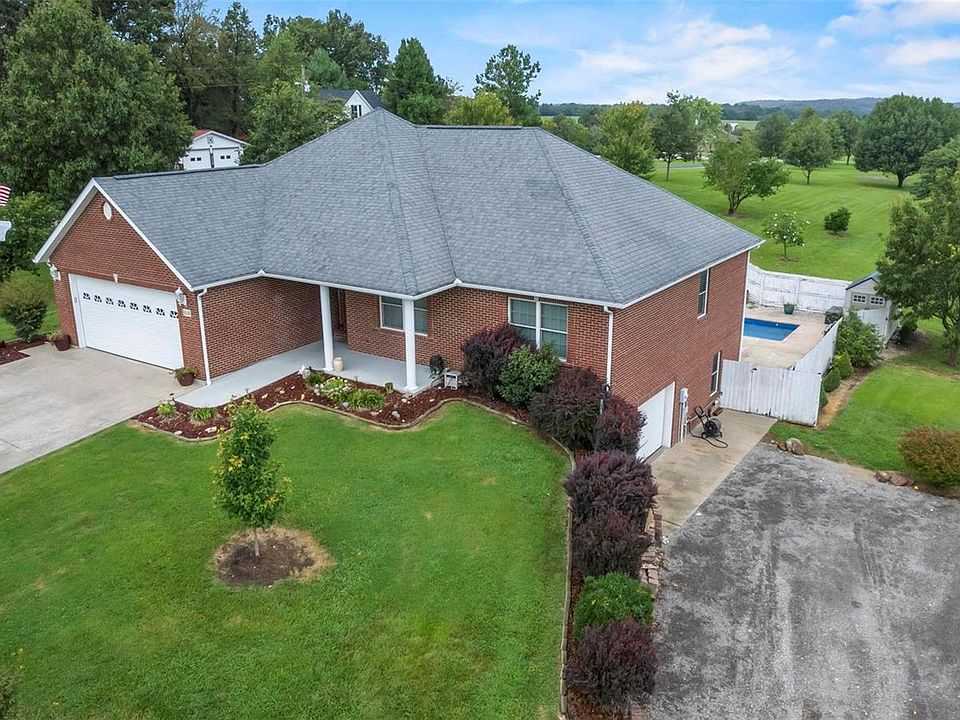 Welcome to your peaceful paradise. Conveniently located just outside of town, this all brick home has everything you are looking for. Located in a quaint subdivision, the views from this property are breathtaking. With 2.25 acres, there is plenty of space to entertain or just enjoy the privacy you are after. With an in ground pool added in 2016, you can enjoy your own private oasis! This 3 bed, 3 bath home offers a master en suite bathroom and walk-in closet. The open concept with vaulted ceilings will immediately draw your attention. Stainless steel appliances are included and really set the kitchen off. In the basement you'll find plenty of room to enjoy your favorite hobbies, or just sit by the brick fireplace and create warm memories. A bonus room with walk-in closet in the basement is the perfect touch. the lower level garage/work shop is the perfect place to tinker or store your toys. Most of the 2.25 acres has an invisible fence for your furry friends.