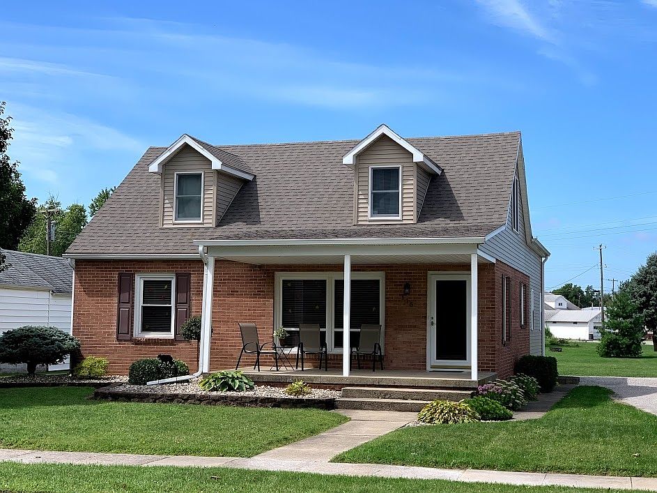 Beautiful mid century home in Pioneer Schools. Brick and vinyl exterior. Sprawling front porch is perfect to sit and relax. Super spacious living room features electric fireplace, TV with surround sound and equipment are included. The farmhouse style kitchen has knotty pine ceiling and walls, appliance package is included. The family room is the heart of the home with plenty of space for entertaining and dining area. The laundry area is spacious. Full bath is down. You will also find bedroom 4 downstairs. Super sized walk in closet is next to bedroom 4. Upstairs is the master bedroom, oh so nice! Half bath, bedrooms 2 and 3 are upstairs as well. Lots of storage throughout. Partial basement is unfinished and great for additional storage. Most windows are newer. Beautiful deck in the back. Very nice storage building AND bonus lot behind the house. Meticulously maintained property. Homes like this one sell quickly. Call Today!