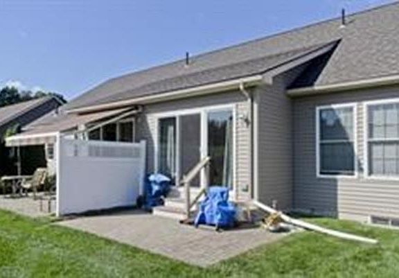 Relax and Simplify your life! 55+ condominium community in desirable Hatfield location is just minutes to major routes and adjoining towns. Great floor plan with open concept and single level living. Fully equipped kitchen has great counter space and opens into dining and living room perfect for entertaining family and friends. Two large bedrooms both have private baths. Other amenities include, central air, security systems, central vacuum, gas heat and first floor laundry. Sunroom has sliders to private back patio area with charming farmland views. One car attached garage and full basement with bulkhead.