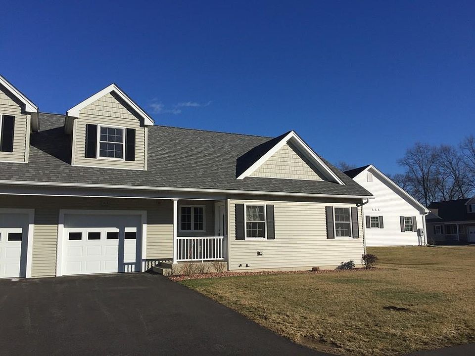 Almost better than new is this beautiful duplex style condo in a desirable 55+ community minutes from Northampton. Because of life's circumstances, the owners were unable to move in, so this pristine unit has never been lived in. The standard amenities are pretty sweet: Granite countertops, 2 full baths, central air, natural gas heat, central vac, security system, full basement with bulkhead, and a 1 car attached garage; but this unit also boasts many upgrades including hardwood floors throughout, fully applianced kitchen including convection oven and soft close cabinets, full sized washer and dryer in the basement and a double sized patio. Carefree living is yours in this quiet, peaceful location; easy access to all major routes as you are less than a mile from I-91 and Rt 5&10...
