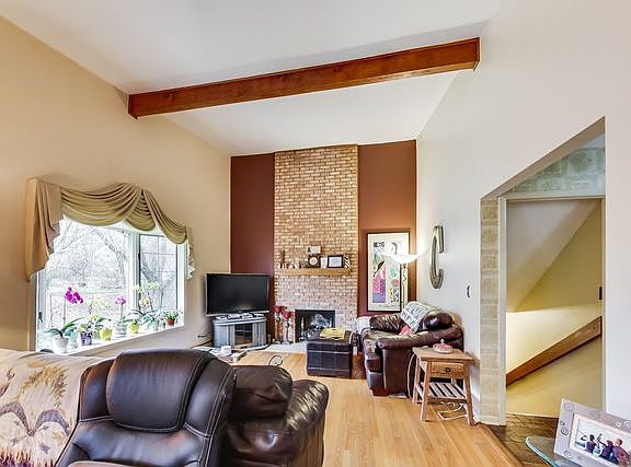 Scenic Tower Lakes, enjoy the lake with its bridges and all this area has to offer. This 3 bed 1.2 bath home is light, bright, and neutral. The Great Room/Living Room has beamed cathedral ceilings, wood floors and brick fireplace. This home has a family room along with a finished basement and office . The outdoor space is wooded and private with a deck. With a little TLC this house will make a beautiful home. Being sold AS-IS.