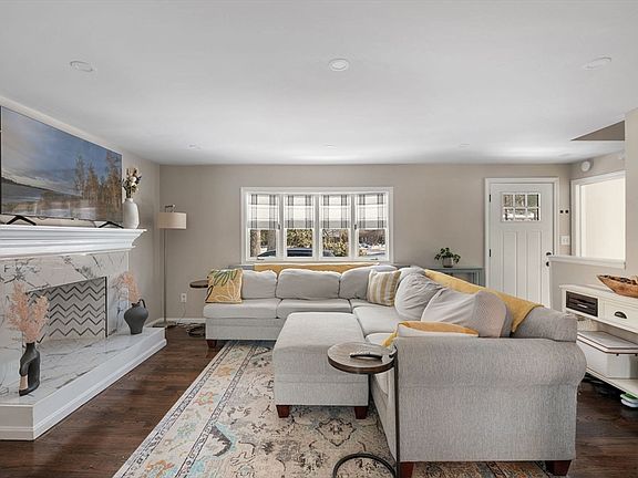 This beautiful Cape-style home sits on an almost an acre corner lot, offering both privacy and space for outdoor enjoyment. The open floor plan is designed for easy entertaining, with hardwood floors throughout and a spacious living room featuring a decorative fireplace and large windows that flood the space with natural light. The kitchen is a standout, with white quartz countertops, soft-close white cabinetry, and sleek stainless steel appliances. The home offers 4 spacious bedrooms, including one on the main level that can serve as an office, plus 2 full baths for added convenience. The lower level provides flexible space for a gym, laundry area, and workshop. Outside, a brand new 6-foot white vinyl fence surrounds the backyard, offering ample privacy for hosting and a safe area for those beloved pets.. A woodline at the back provides natural shade, especially during the vibrant fall foliage season. A large circular driveway offers plenty of parking at this move-in ready home!