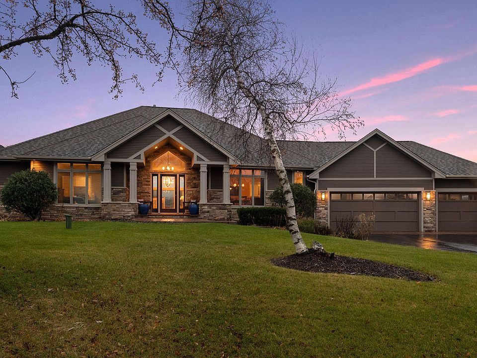 Spectacular one level living on private Burl Oaks Golf Course. Located at the end of 2 cul de sacs, this quiet lot offers panoramic views and amazing sunsets. The views continue inside with exceptional floor to ceiling windows that provide a bright and airy living space. Sophisticated interior with an open floor plan, hardwood and tiled floors, new carpet and many upgrades. The gourmet kitchen has exceptional storage, stainless appliances and granite counter tops. Owners ensuite with a soaking tub and freshly renovated shower provides an oasis from busy life. Many newer mechanical updates including the furnace, water heater, air conditioning, well pump and washer and dryer. Conveniently located near shops, restaurants, parks and schools. This home is designated Westonka School district but is very close to Orono as well. Truly a special property inside and out!