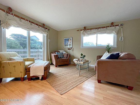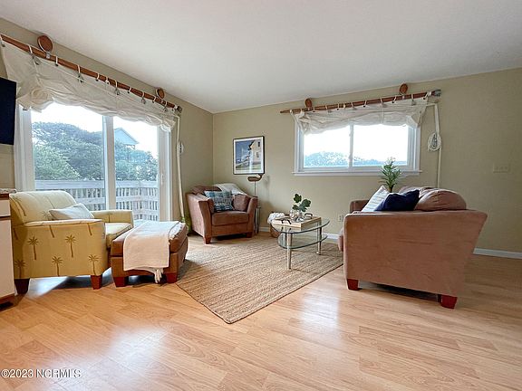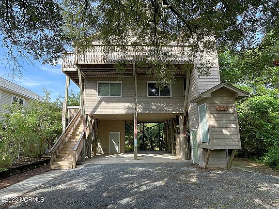 Beautiful Surf City Beach House with bright open floor plan on stunning Topsail Island!! Just steps to your private deeded OCEAN and SOUND ACCESS! Screened Porch and lots of Deck space is great for entertaining. Elevator, private outdoor shower and exterior storage room too! Sunny Family room has Lam hardwood floor and sliding doors to the deck. Kitchen is open to the family room and has granite counters, lots of cabinets and counter space with walk-in pantry. 2 spacious Bedrooms on the first floor and another large Bedroom/Bonus room option on the upper floor. Bonus room has 360 degree treetop window views! The home is being sold furnished, ready for a primary residence, second home, or vacation rental. Days on market is incorrect. Active on 6-23-2023
